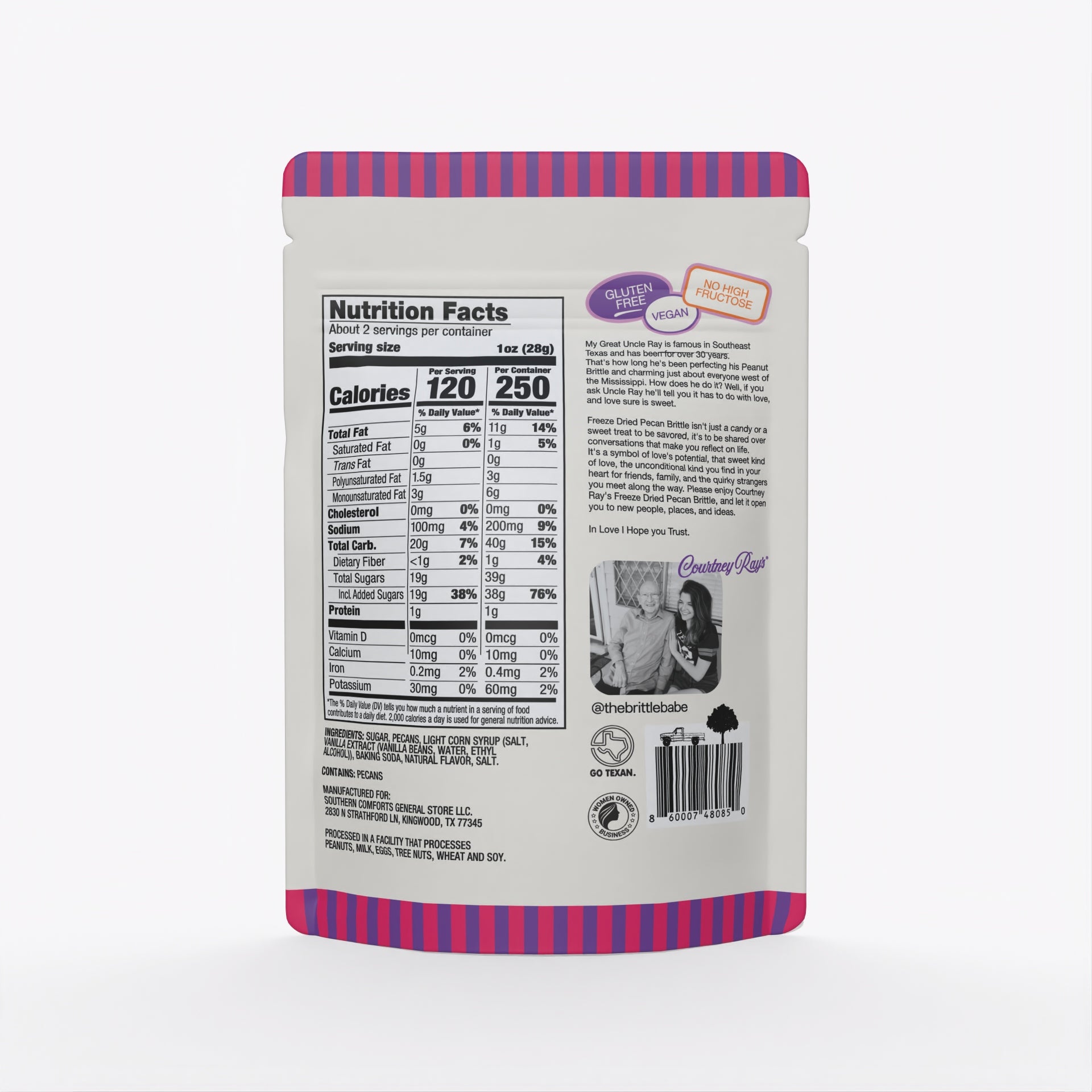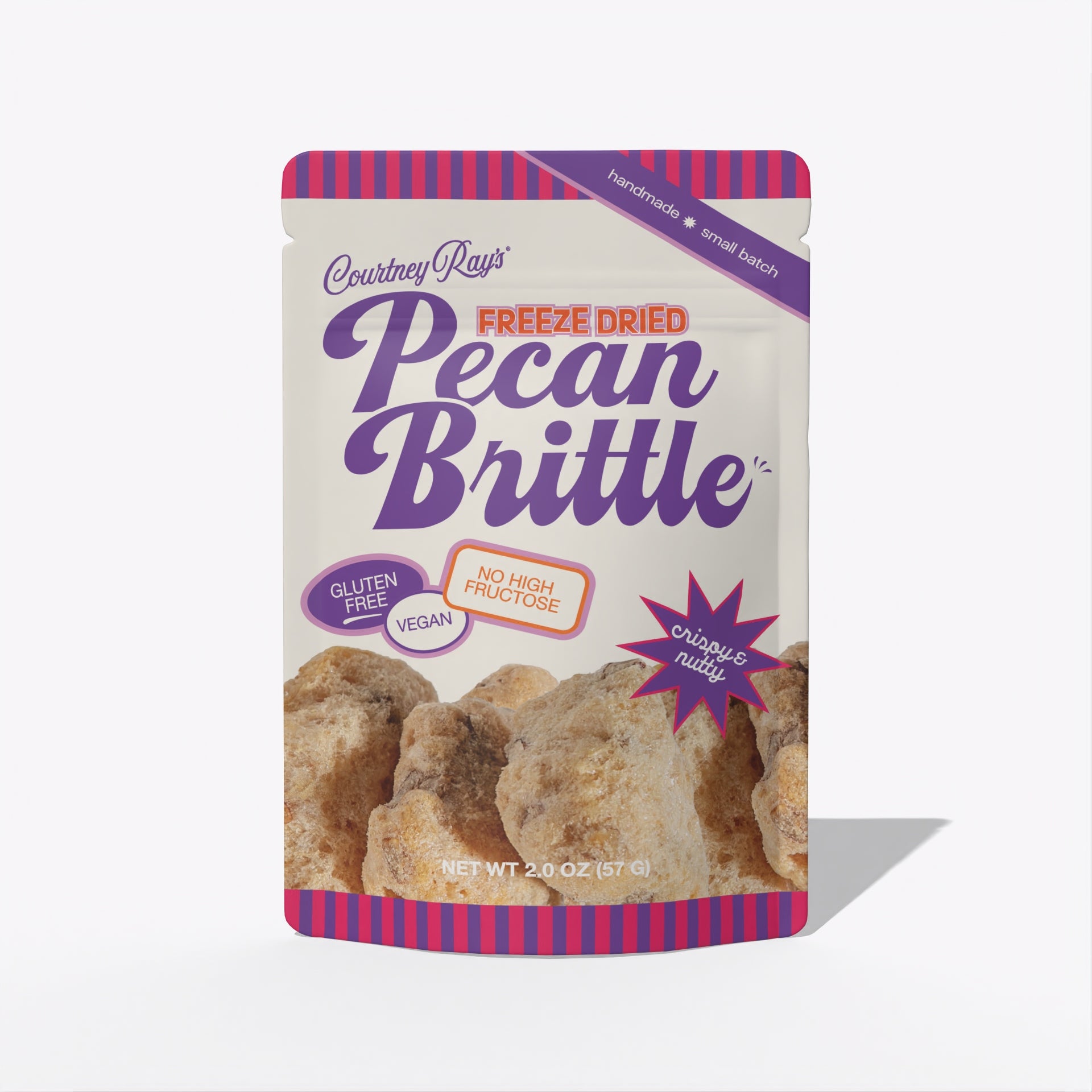 Our freeze-drying process removes moisture while preserving every bit of flavor, giving this pecan brittle an unbelievably crisp texture candy lovers can’t resist.